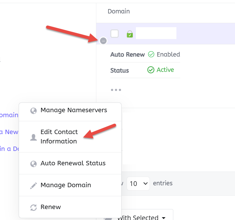 Each domain with Arynox can have its contact information. To change the contact information of an active domain, follow the instructions stated below: